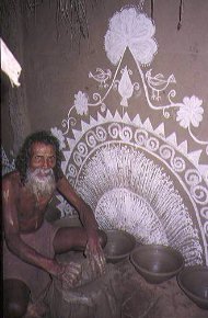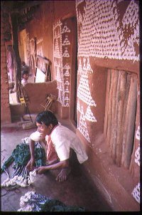 Orissan house decorations drawn with rice paste, dedicated to the Goddess of Harvest Laksmi
